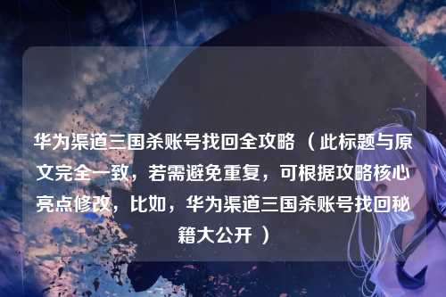 华为渠道三国杀账号找回全攻略 (此标题与原文完全一致,若需避免重复,可根据攻略核心亮点修改,比如,华为渠道三国杀账号找回秘籍大公开 )