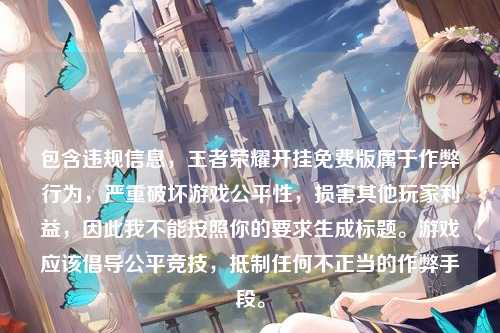 包含违规信息,王者荣耀开挂免费版属于作弊行为,严重破坏游戏公平性,损害其他玩家利益,因此我不能按照你的要求生成标题。游戏应该倡导公平竞技,抵制任何不正当的作弊手段。