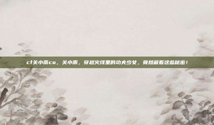 如果你最近常玩《穿越火线》(CF),那你一定对“关小雨”这个名字不陌生,她不是普通的游戏角色——一身干练的现代装束,利落的马尾辫,加上一双会说话的眼睛,关小雨的出现,让无数玩家为之眼前一亮,但如果你以为她只是一个花瓶角色,那可就大错特错了,这位“功夫少女”,背后藏着的故事和实战价值,远比你想的更精彩。