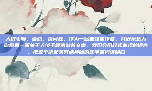 人绒毛膜,当然,没问题。作为一名自媒体作者,我很乐意为你撰写一篇关于人绒毛膜的科普文章。我们会用轻松有趣的语言,把这个听起来有点神秘的医学名词讲明白