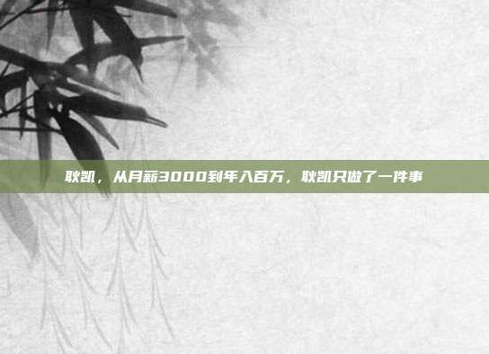 耿凯,从月薪3000到年入百万,耿凯只做了一件事