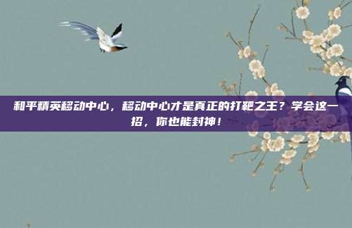 下次打游戏的时候,别再傻傻地蹲在一个地方了,勇敢地动起来,做一个让人头疼的“移动中心”吧!你会发现,原来吃鸡,也可以这么轻松。